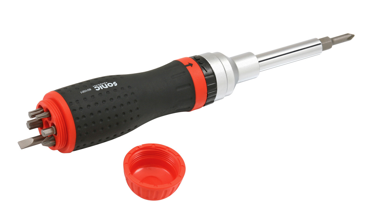 - 16-in-1 Ratchet Screwdriver with multiple bits stored in the handle
